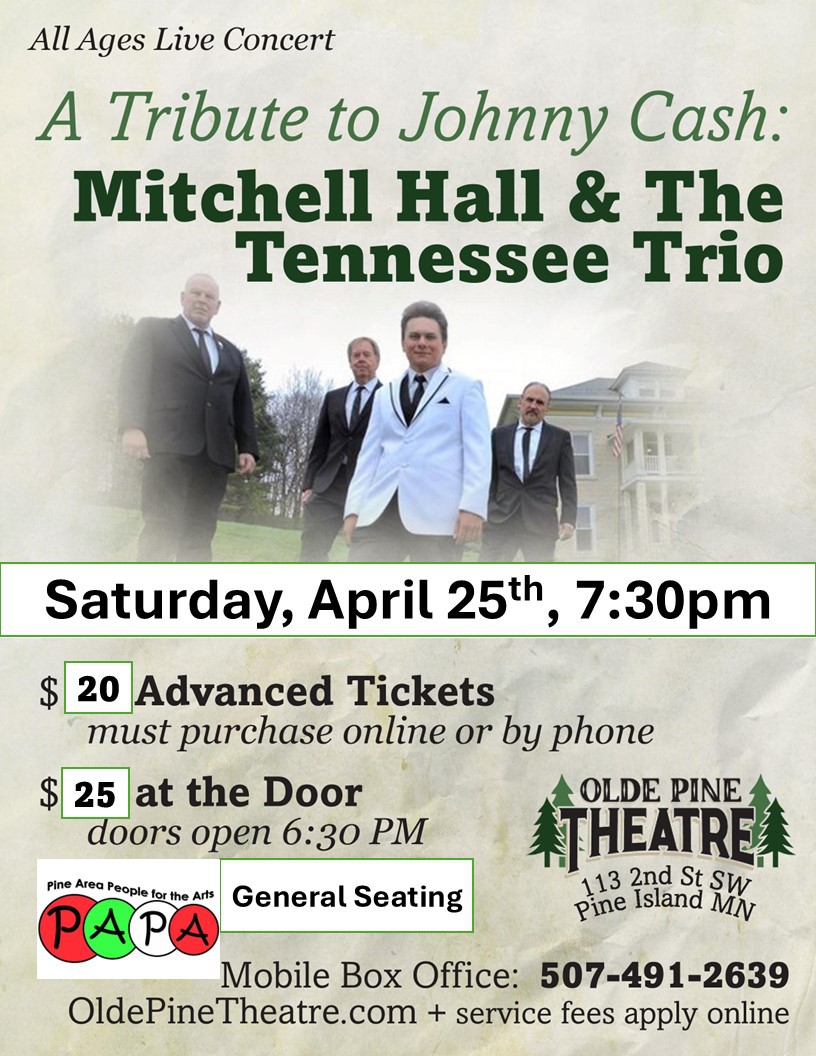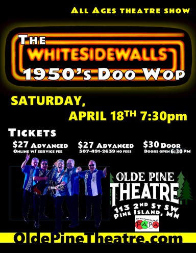 Join us at the Olde Pine Theatre for a re-creation of the February 2nd, 1959 Winter Dance Party. Our high energy musicians will authentically replicate Buddy Holly, Ritchie Vallens, and